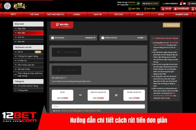 Hướng Dẫn Chi Tiết Cách Rút Tiền 12BET